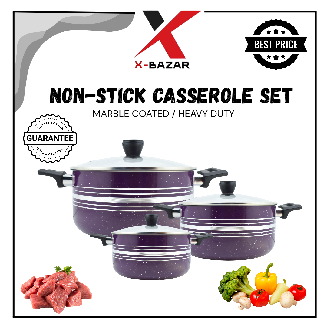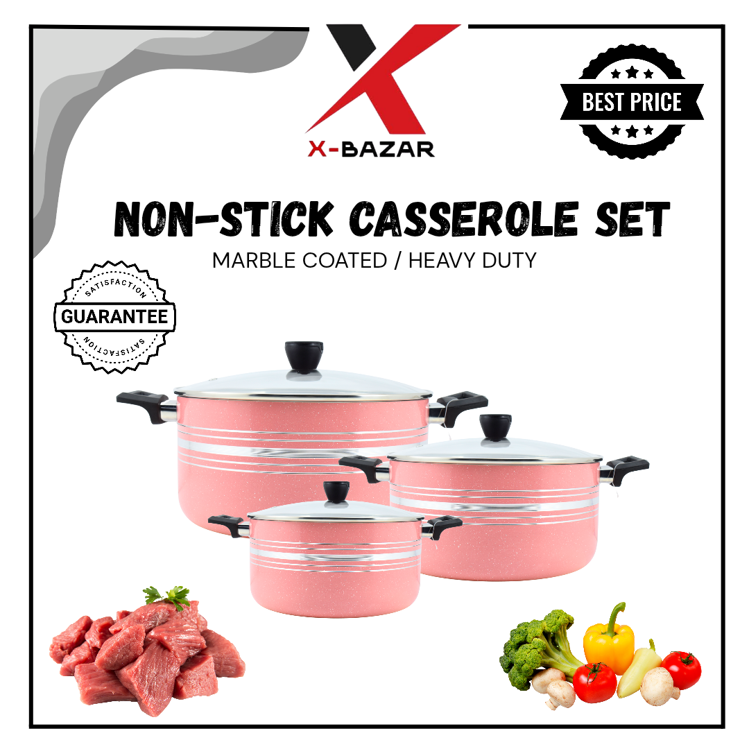 Upgrade your kitchen with this versatile 3-piece Non-Stick Casserole Set. Designed for everyday cooking, this set includes three essential sizes – 20cm, 24cm, and 28cm – perfect for preparing anything from small side dishes to large family meals. Each casserole comes with a tempered glass lid for convenient cooking visibility, and a durable non-stick coating that ensures easy food release and quick cleaning. Crafted from high-quality materials for even heat distribution, these casseroles are a must-have for every modern kitchen.